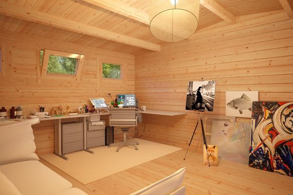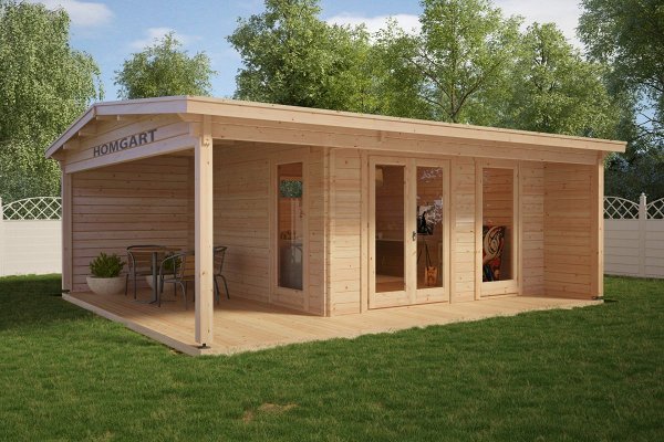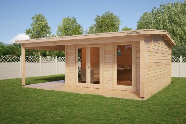 The price includes:Harness made of timber 100 x 150 mm, floor logs 100 x 150 mm, floor / terrace board 35 x 135 mm, wall kit with a thickness of 45 mm / 60 mm, doors and windows with fittings, rafters 45/60 mm x 135 mm, roof board 20 x 135 mm, wind board 20 x 100 mm.