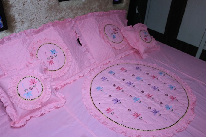 Foam is filed inside pillow covers cushions and embroidered part of bedsheets