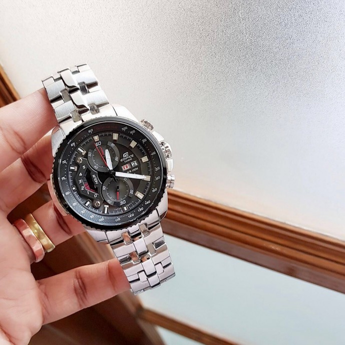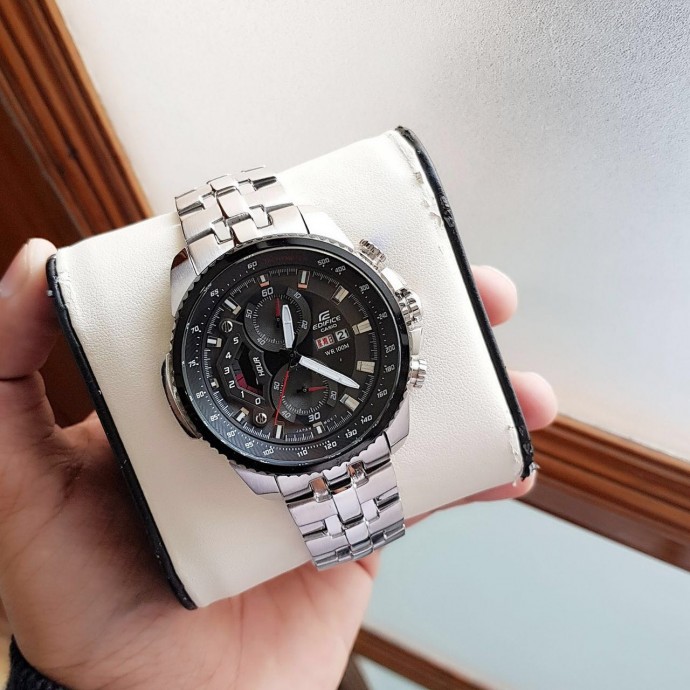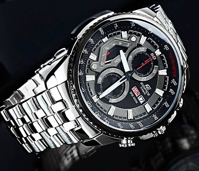 - Feature-working chronograph, stainless steel metal chain & black ring bezel