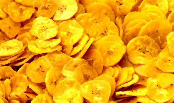Banana chips are dried slices of bananas. They can be covered with sugar or honey and have a sweet taste, or they can be fried in oil and spices and have a salty or spicy taste.