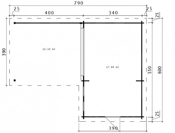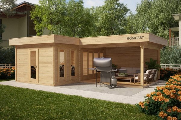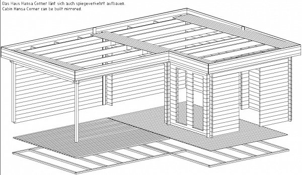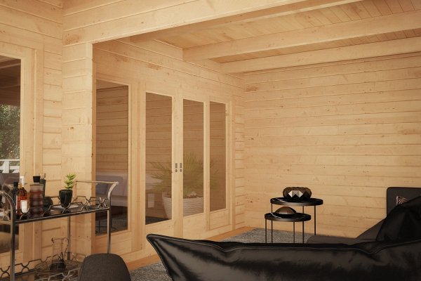 The price includes:Harness made of timber 100 x 150 mm, floor logs 100 x 150 mm, floor / terrace board 35 x 135 mm, wall kit with a thickness of 45 mm / 60 mm, doors and windows with fittings, rafters 45/60 mm x 135 mm, roof board 20 x 135 mm, wind board 20 x 100 mm.