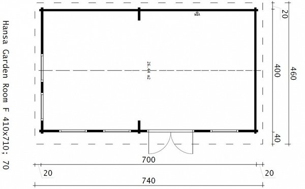 Included in the price:Railing made of timber 100 x 150 mm, logs 100 x 150 mm, floor / terrace board 35 x 135 mm, wall kit 45 mm / 60 mm thick, doors and windows with fittings, rafters 45/60 mm x 135 mm, roof board 20 x 135 mm, windboard 20 x 100 mm.