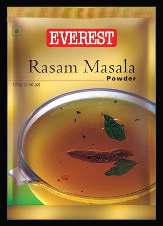 A heart-warmingly spicy yet, light, soup-like dal, Rasam is a must at the table in South Indian homes. It can be eaten with plain boiled rice or drunk as a flavoursome soup. USAGE These days Rasam comes in many 'avataars' from the traditional Lemon Rasam and Tomato Rasam to the more adventurous Garlic and even Pineapple Rasam. Fortunately, the basic recipe remains the same. Everest Rasam Masala Powder, a chilli-coriander-cumin based blend - assures you of authentic Rasam every time.
