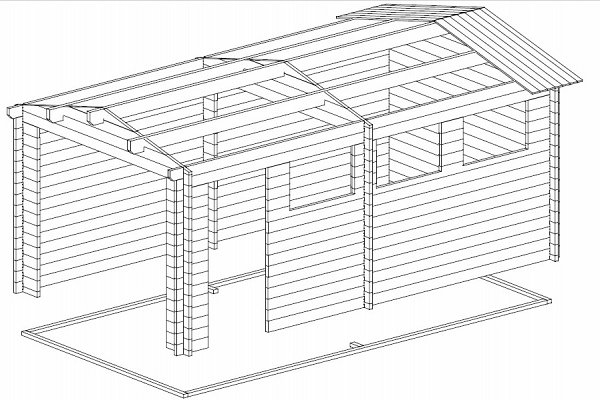 The price includes: Harness made of timber 100 x 150 mm, floor logs 100 x 150 mm, floor / terrace board 35 x 135 mm, wall kit with a thickness of 45 mm / 60 mm, doors and windows with fittings, rafters 45/60 mm x 135 mm, roof board 20 x 135 mm, wind board 20 x 100 mm.