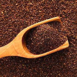 Brewed coffee from typical grounds prepared with tap water contains 40 mg caffeine per 100 gram and no essential nutrients in significant content. In espresso, however, likely due to its higher amount of suspended solids, there are significant contents of magnesium, the B vitamins, niacin and riboflavin, and 212 mg of caffeine per 100 grams of grounds.
