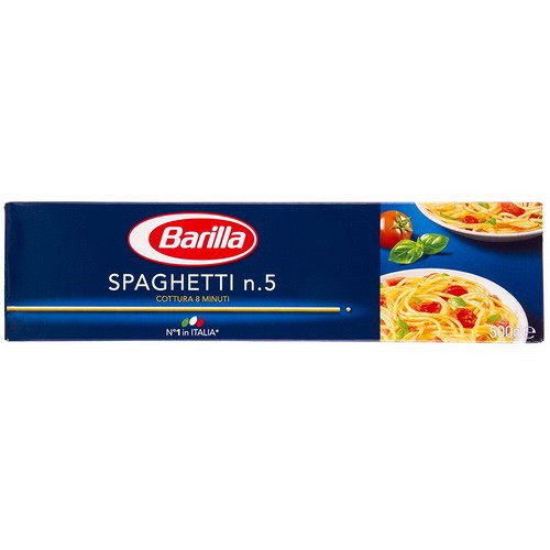 Spaghetti number 5 Barilla is synonymous with Italian cuisine. There are thousands of recipes for cooking spaghetti: with meat, cheese, tomato, sauces for pesto, with ham and salami, mushrooms, bacon and eggs, tomatoes and gorgonzola, etc. Cooking time is only 8 minutes. Combining spaghetti with ready-made Italian sauces, you can prepare delicious meals in 10 minutes.