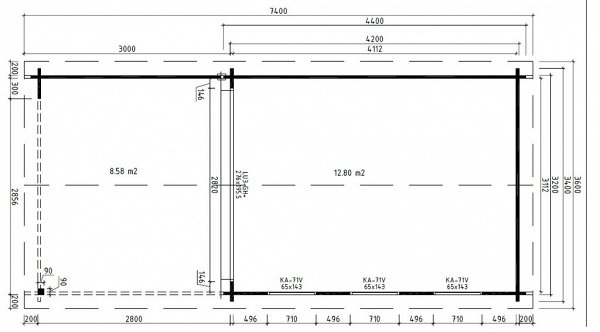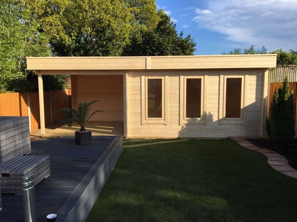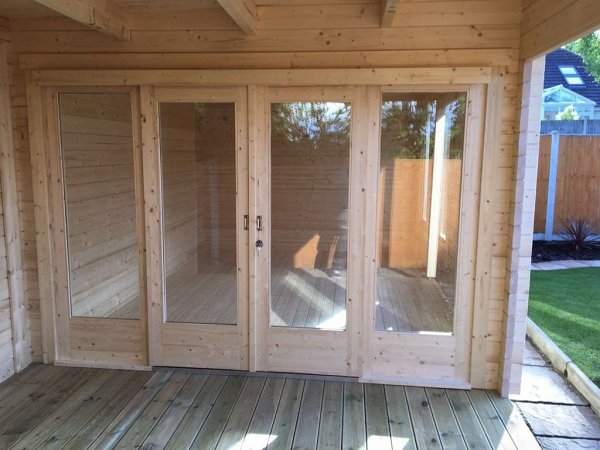 Included in the price:Railing made of timber 100 x 150 mm, logs 100 x 150 mm, floor / terrace board 35 x 135 mm, wall kit 45 mm / 60 mm thick, doors and windows with fittings, rafters 45/60 mm x 135 mm, roof board 20 x 135 mm, windboard 20 x 100 mm.