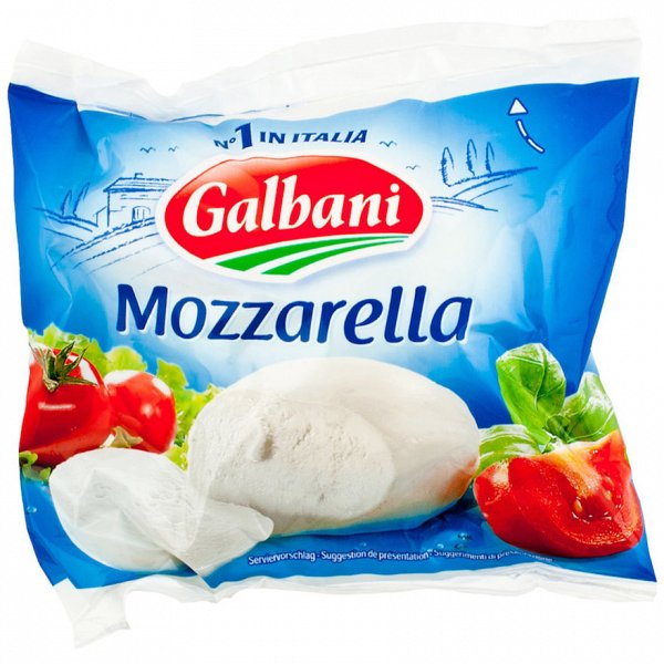 Soft balls of medium-sized Mozzarella without hard skin. It has a milky-white color, rich milk smell and a sweet, slightly sour taste. Made from pasteurized cow milk with rennet, salt and lactic acid bacteria. Without GMO Large balls of mozzarella cheese in vacuum-packed, manufacturer - Italy