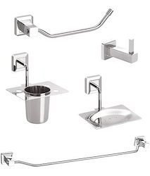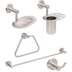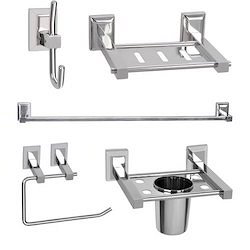 Backed by a team of dexterous professionals, we have been able to manufacture and supply a comprehensive assortment of 5 Pieces Bathroom Accessories Set (Shadow Series). These accessories set are manufactured with precision using finest quality of material & contemporary techniques following the set norms of market. Owing to their impeccable finish and alluring design, these accessories are highly acknowledged among our clients. Offered accessories set is made available in numerous customize