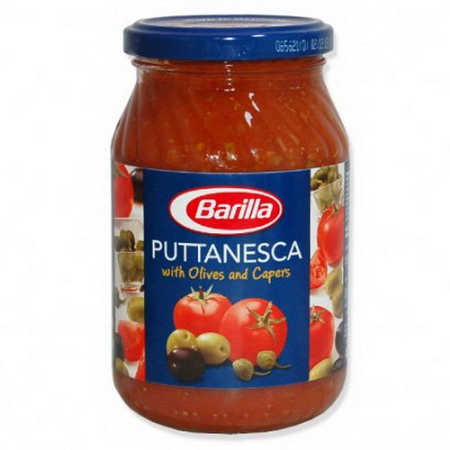 Barilla Puttanesca sauce is a delicious combination of green and black olives, delicious tomatoes, capers and a spicy touch of chili.