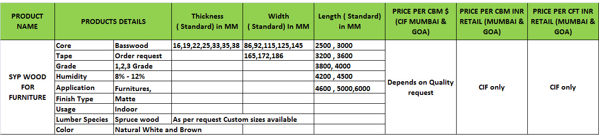 SYP WOOD FOR FURNITURE